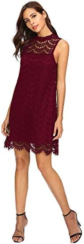 Retro elegant mock neck sleeveless solid a-line wedding formal evening dinner cocktail party lace dress