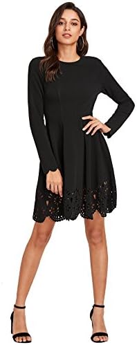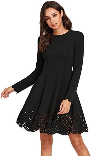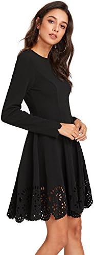 ROMWE Scallop Laser Cut Hem Fit & Flare Dress