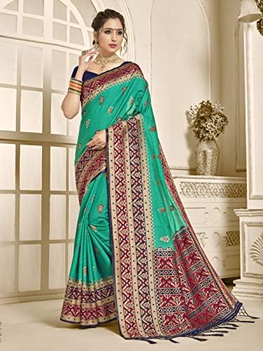 Saree Color: Teal | Blouse Color: Navy Blue