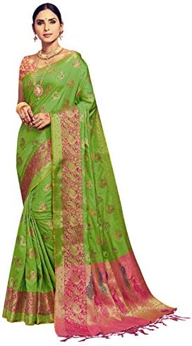 Sarees for Women Banarasi Kanjivaram Art Silk Woven Saree l Indian Ethnic Wedding Gift Sari with Unstitched Blouse