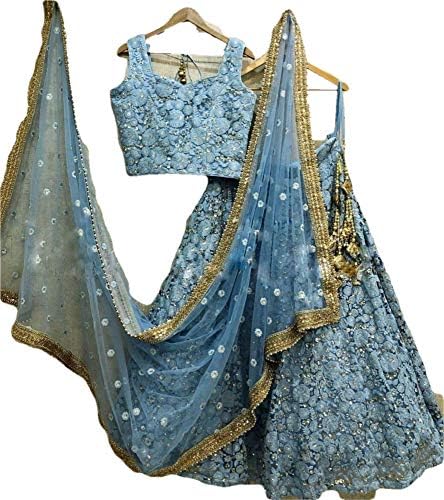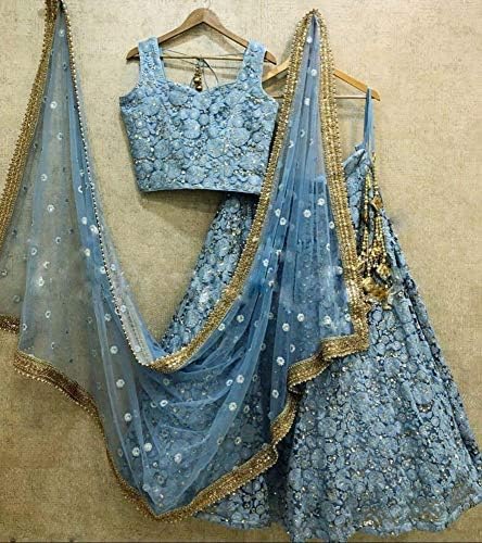 Semi-Stitched Embroidered Lehenga Choli Party Wear Lehenga Choli Traditional Wedding Wear Lehenga Choli 01 Sky Blue