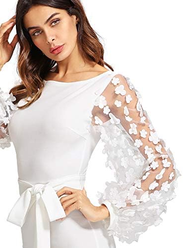 SheIn Women's Elegant Mesh Contrast Bishop Sleeve Bodycon Pencil Dress