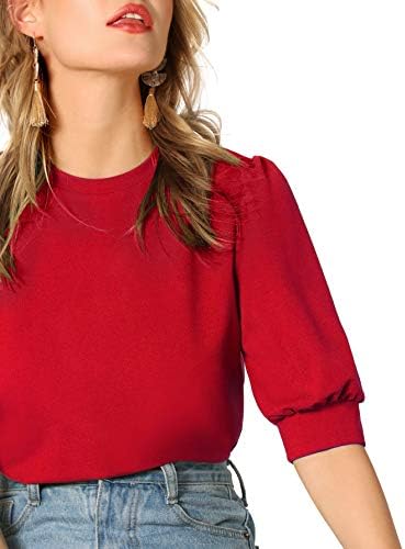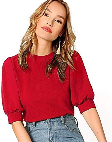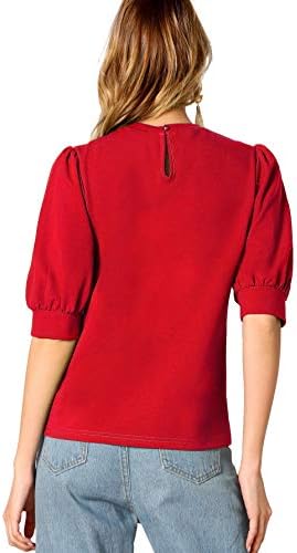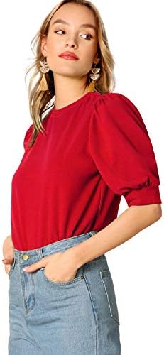 SheIn Women's Puff Sleeve Casual Solid Top Pullover Keyhole Back Blouse