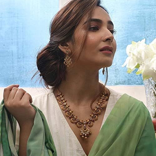 Moon is one of our most popular necklace set designs. If you love Indian jewelry, Moon will always be your first choice. With this remarkably beautiful Indian antique necklace set, you will look heavenly, right from the start. Moon is the best antique necklace set for women at Tarinika and we are sure it’ll add a celestial touch to your overall experience - whether you use moon necklace set for weddings or for any other special occasion.