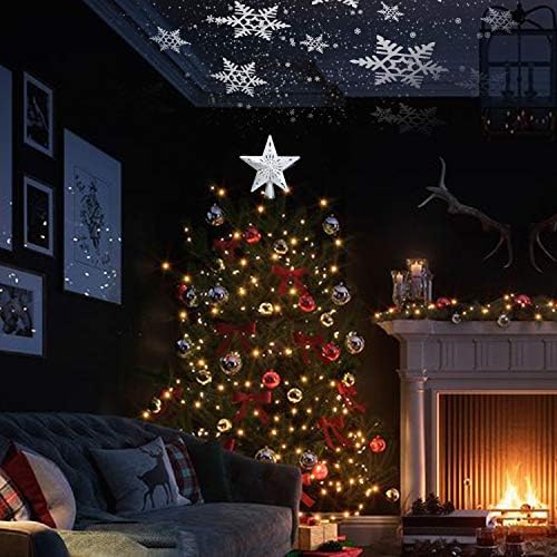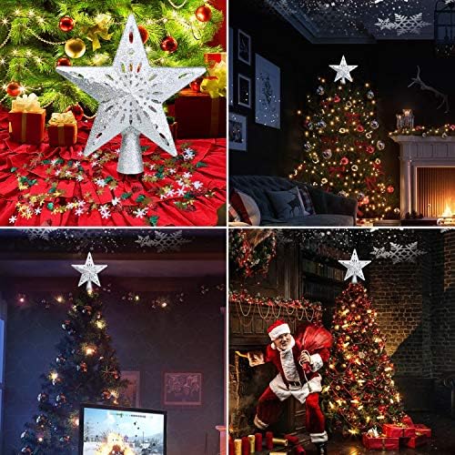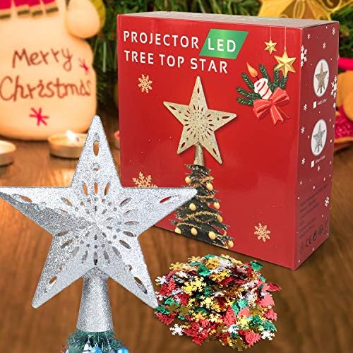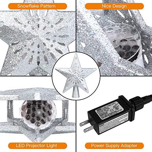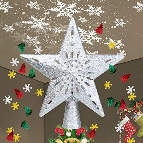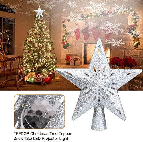 TEEDOR Christmas Tree Topper Star Lighted with Snowflake Projector for Christmas Tree Topper Decoration(Silver)