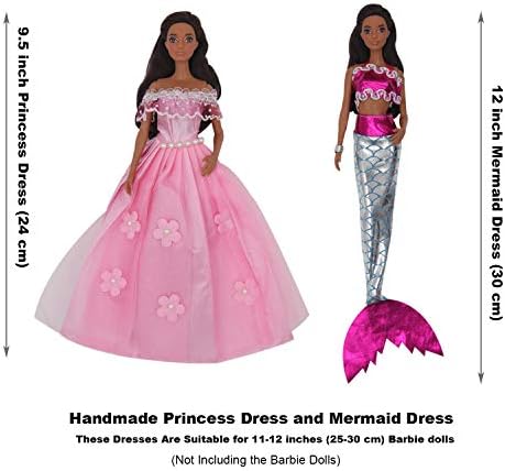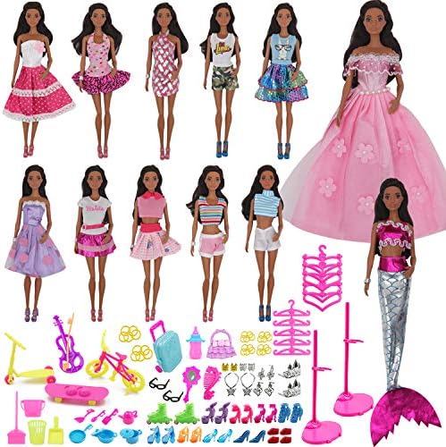 Unique design doll clothes and accessories set include: 90 pieces handmade doll clothing and accessories for 11.5 inches girl dolls contains 1 Mermaid Dress,1 Handmade Wedding Doll Dress,10 Different Handmade Party Doll Grown Outfits and 78 Doll Accessories. Only Clothes and Accessories, dolls are not included. This is a good choice for girl's gift.