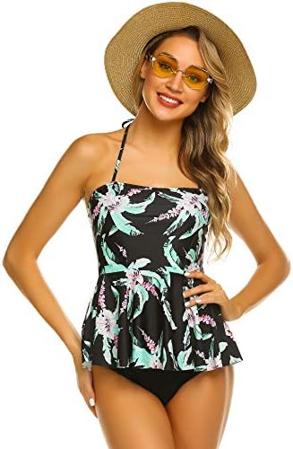 Feature: This tankini top has a ruffle peplum flare just above the waist for concealing little tummy. Removable soft pads and adjustable halter neck straps offers super SUPPORT, SHAPE and COVERAGE, even large-chested women would need.