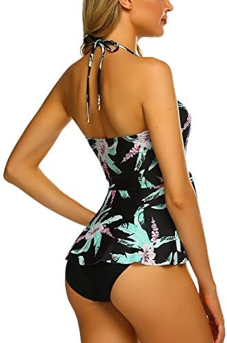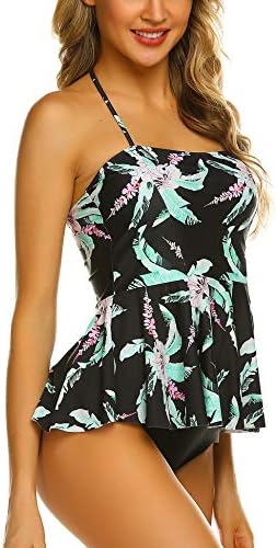 ADOME Tummy Control Tankini Swimsuits for Women 2 Pcs Swimsuit Set Floral Print Ruffle Halter Swimwear