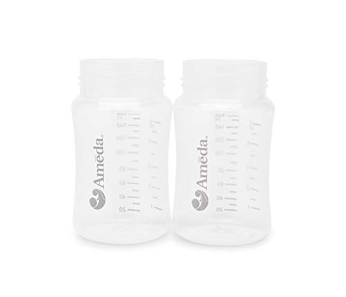 Ameda Mya Wide Neck Breast Milk Storage Bottles can be used to safely store expressed milk in the fridge or freezer. These storage bottles are breast feeding essentials and perfect for paced feeding. They are clearly marked to measure your milk, and have space for clear labeling. Works with Ameda locking rings and discs to seal the Milk collection container, helping to prevent spills. Please note: the Mya Breast Milk Storage Bottles are only compatible with the Mya and Mya Pro and will not work with the Mya Joy Milk Collection System Kit or HygieniKit.