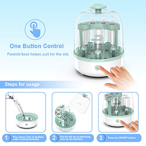 GROWNSY baby bottle sterili-zer can handle steriliz*ing and drying baby bottles, clean pacifiers, baby toys, and breast pump accessories