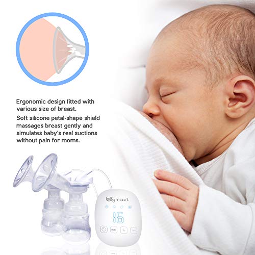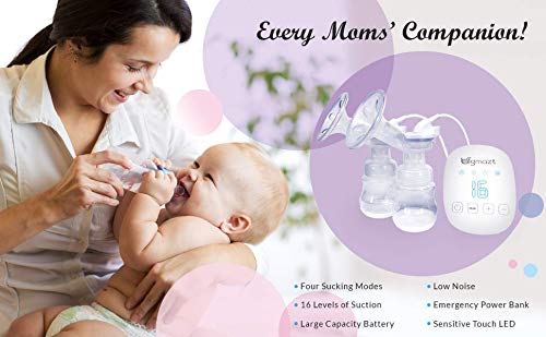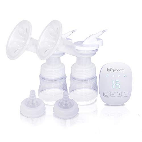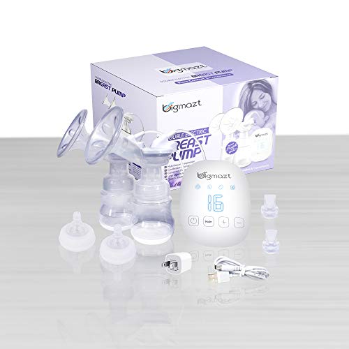Best Double Electric Breast Pump - Portable with Adjustable Suction & Pumping 16 Levels - Powered Rechargeable Battery - Super Silent by Bigmazt