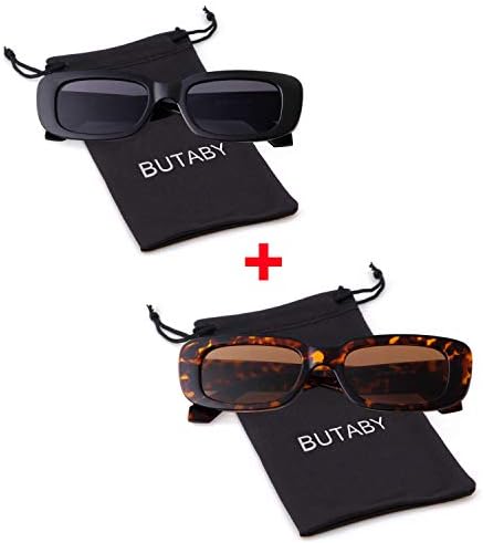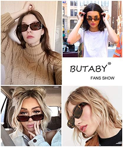 BUTABY Rectangle Sunglasses for Women Retro Driving Glasses 90’s Vintage Fashion Narrow Square Frame UV400 Protection