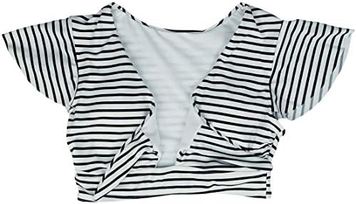 Tie Front Ruffle Top with Removed Padding Cups,Top is tied in the front so you can adjust coverage an supportHigh waist bottoms are high enough to cover up all your stomach stretch marks,They also cover your behind well.Soft, lightweight and comfy fabric is perfect for swim, surfing, beach, tropical vacation, honeymoon, and pool party.