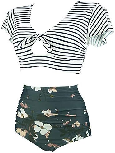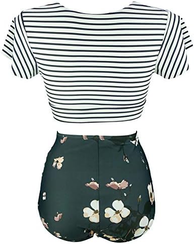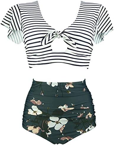 COCOSHIP Women's Retro Floral High Waisted Shirred Bikini Set Tie Front Short Sleeve Top Ruffle-great for all body tipes and shapes,and loved by women of all ages.