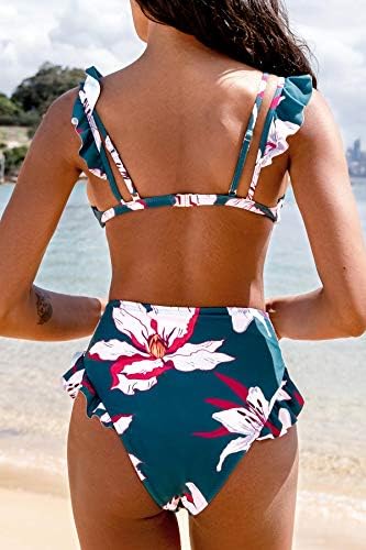 CUPSHE Women's Bikini Swimsuit Ruffled Floral Print V Neck Two Piece Bathing Suit