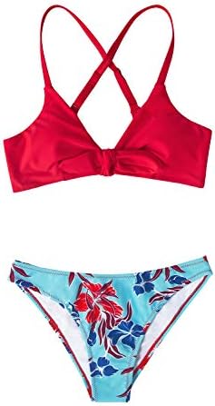 CUPSHE Women's Red Floral Print Knot Adjustable Bikini Sets