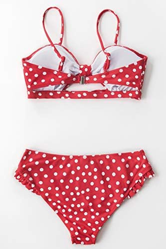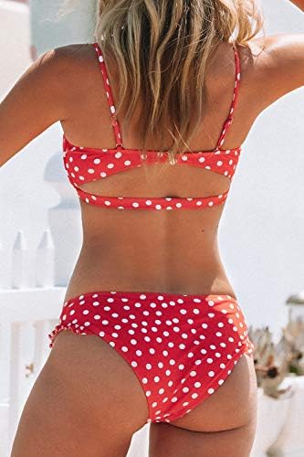 Cutout under the bust, Ruffles, Adjustable shoulder straps, Back hook closure,Polka dots Pattern