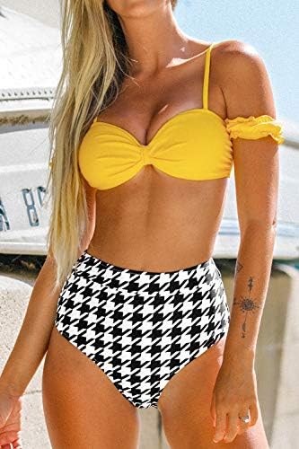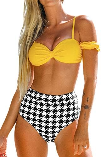 CUPSHE Women’s Bikini Swimsuit Knot Front Bandeau High Waisted Set