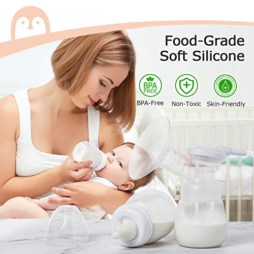 The extra soft silicone shields and 25mm flange conform to different breast shapes, massage and warm the breast to make pumping more comfortable and stimulate milk let down flow.