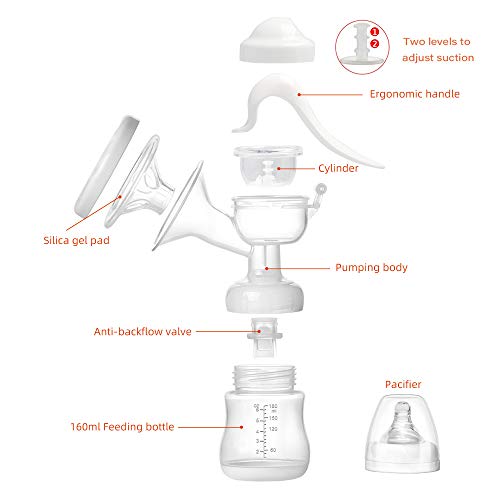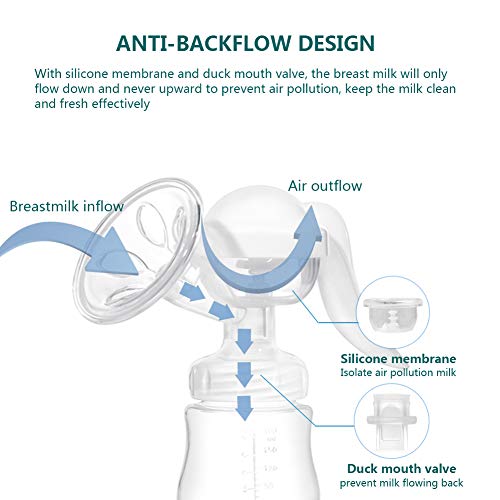 ☀Easy to Use: Ergonomic handle with two levels suction allows you to adjust the suction for the most optimal comfort level and efficient flow of breastmilk. Anti-backflow device, guarantee mother's love is not wasted.