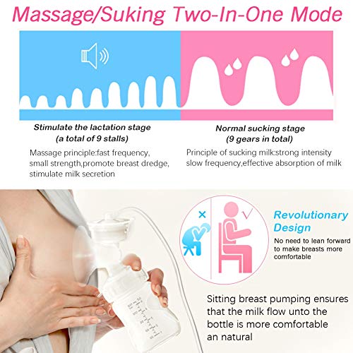 High Efficient - Perfect breast suction design saving time for Mum. The milk pump has 2 pumping modes (Massage, Suction) and 9 suction levels and allows a painless pumping and gives new mothers more choice and comfort.