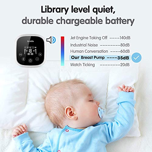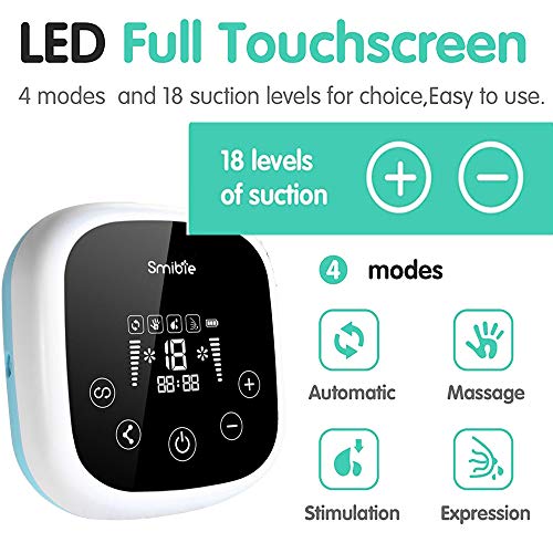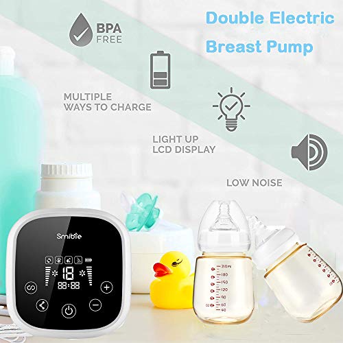 Different modes and levels adjustable, the breast pump can help you pump milk more easily, effectively and comfortablyDouble electric breast pump, smart touch display, solving new mother's problem of spilling milkThe automatic mode of massage makes pumping milk more comfortable for moms. Moms can choose the most comfortable mode and levelLow-noise design will provide a good sleeping environment for your baby. Thus there is no worries about waking your baby when pumping during a nap or bedtimeSmart memory function, boot up to the most comfortable mode you used last timeDesigned with anti-backflow, provides a hygienic closed system to prevent breastmilk from backing up to the pump, prevent infection, and keep the milk freshBuilt-in large capacity li-ion battery, can be used for long hours when full charged, solving the outdoor problems.LED touch screen allows moms to operate easily, sensitive touch panel and high definition screen provides better breastfeeding experience