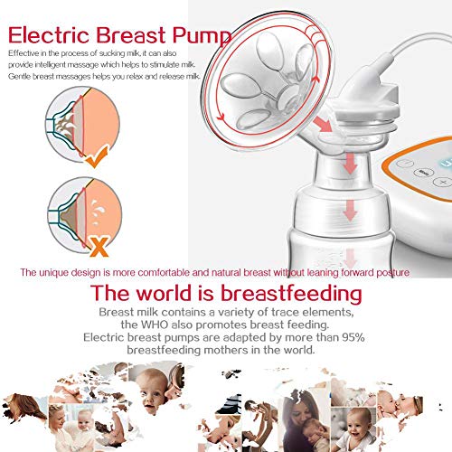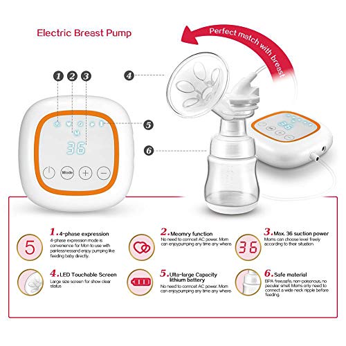 Electric Breast Pump with Petal Massage Pad, Comfort Breastmilk Pump, Portable Single Baby Breast Pump with USB Charging Battery LED Display BPA Free
