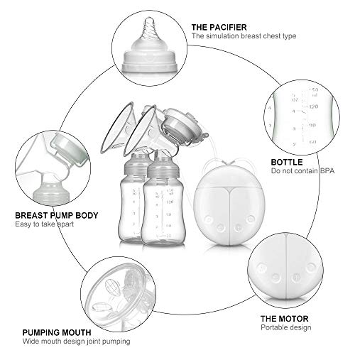 Electric Intelligent Breast Pump, BPA-Free USB Dual Breast Pump Safety Comfortable and Lightweight Automatic Massage Postpartum Breast Pump, 150ml Milk Storage Bottle with Lid and Nipple …