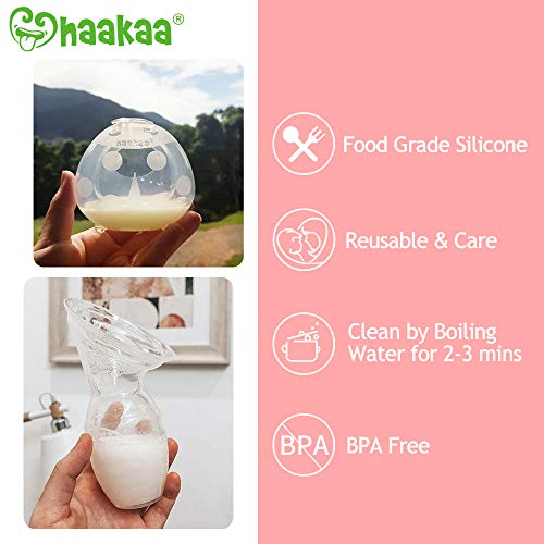 Haakaa Silicone Breast Shells Collect Each Drop. Even if you are collecting breastmilk in the outdoors or in a public room, quiet working haakaa milk shell won’t embarrass others or yourself. About 60 grams(0.13 lb) weight of the haakaa milk saver allows you to wear without any uncomfortable feeling and pressure and they are recommended to use with nursing bra. Closely fits the breast skin would not miss any precious breast milk.