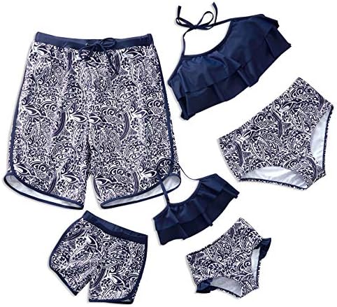 ⇒ Matching - Family swimsuits bikini set featuring ruffle top and bottom for women and girls. Swim trunk for men and boys. Matching the same style printing swimsuit with your kids, cutest family matching swimwear, best choice for swimming and shooting.