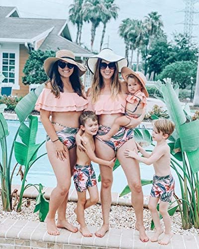 ⇒ Matching - Family swimsuits bikini set featuring ruffle top and bottom for women and girls. Swim trunk for men and boys. Matching the same style printing swimsuit with your kids, cutest family matching swimwear, best choice for swimming and shooting.