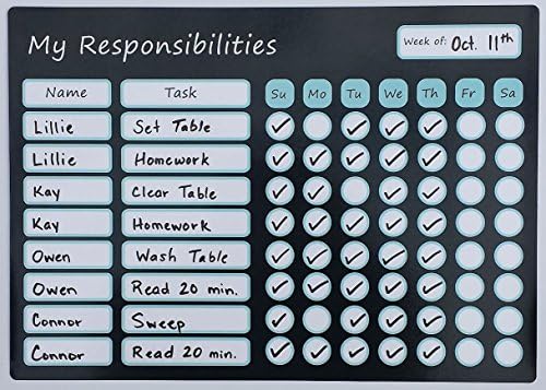 TRYING TO KEEP TRACK OF YOUR EACH MEMBER OF YOUR FAMILY’S RESPONSIBILITIES? This erasable chart offers unmatched ability to track your family member’s activities or chores.