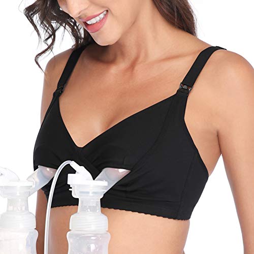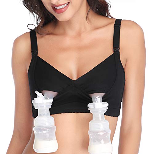Lupantte Hands Free Pumping Bra, Deep V Breast Pump Bra with Pads, Adjustable Nursing Bra for Pumping. Fit Most Breast Pumps Like Spectra, Lansinoh, Philips Avent, etc. (Large) Black