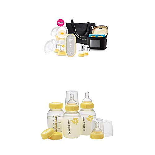 Medela Freestyle Flex Breast Pump and Extra Breast Milk Storage Bottles, Smart Pump, Closed System Quiet Portable, 3 Pack of 5 Ounce Breastfeeding Bottles with Nipples, Lids, Wide Base Collars, Caps