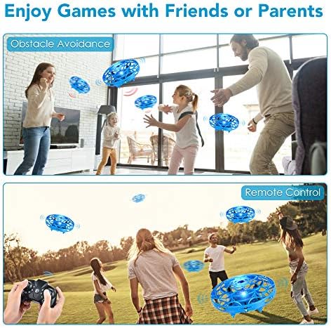 【Easy to Control】: Turn on the power button and wait for 3 seconds untill the LED light turn to blue, then toss the hand drone lightly in the air and watch it hover around. Then you can perform incredible acrobatic tricks and stunts by hand gesture or remote control. 1-Button take off/landing, 6-axis gyroscope, intelligent sensor abstacle avoidance. The best kids drone for beginners.