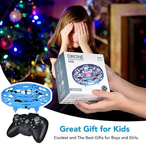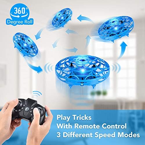Mini Hand Operated Drone, AFDEAL Pocket Hover Toy Interactive Aircraft Upgraded Gesture and Remote Control Flying Drone 360° Rotating LED Lights Stress Reliever for Boys and Girls Kids Adults(Blue)