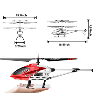 Compare the other helicopter, this bigger aircraft 18.5*3.26*7.84 inch is more bigger. With Stronger Power Motor to support longer flight time as heavy weight.