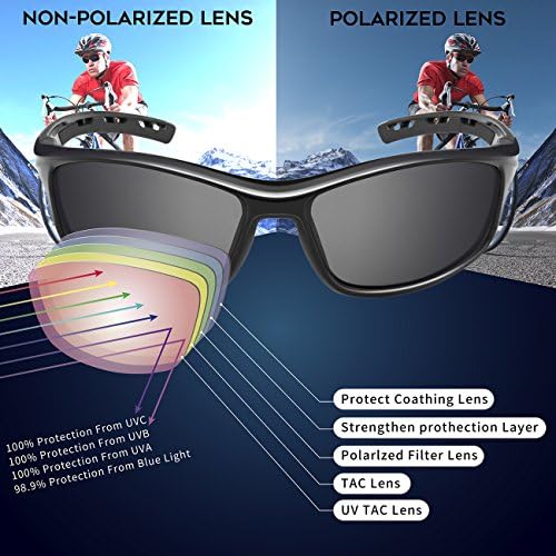 TAC Polarized and Mirror Coating Lens- Offer 100% UVA&UVB Protection against the sunlight filtering 100% of all UVA/UVB/UVC and Harmful Blue Light Up to 400nm.Restore true color, eliminate reflected light and scattered light and protect eyes perfectly.