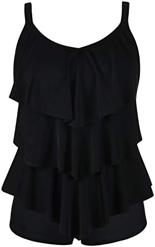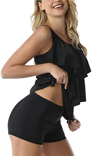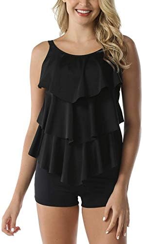 Style: Women's Two Pieces Tankini Set. Layered ruffled tankini top with full coverage boy short bottom. Function for tummy control, the beautiful printed pattern design show your own unique style
