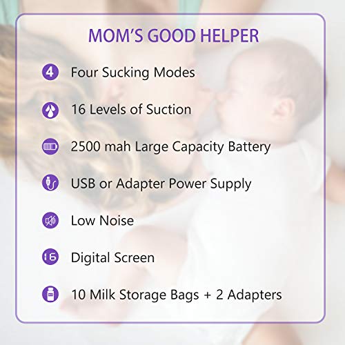 【Function】Smibie electric breast pumps have an Touchscreen controller with 4 modes (Automatic, Massage, Suck, Memory ) and 16 suction levels for choice. The built-in intelligent memory chip will remember your last used settings automatically. Massage breasts before pumping,comfortable and pain free.