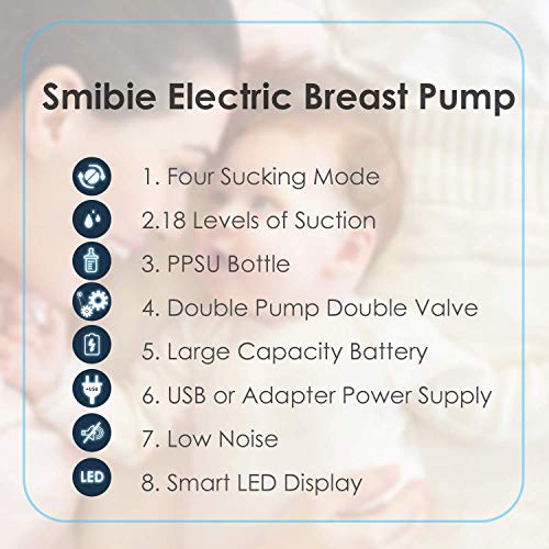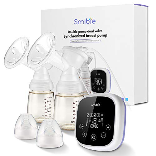 Smibie Double Electric Breast Pumps with 4 Modes & 18 Levels Portable Pain-Free Breastfeeding Pump Ultra-Quiet Rechargeable Memory Function Milk Pump for Moms on The go (Purple)