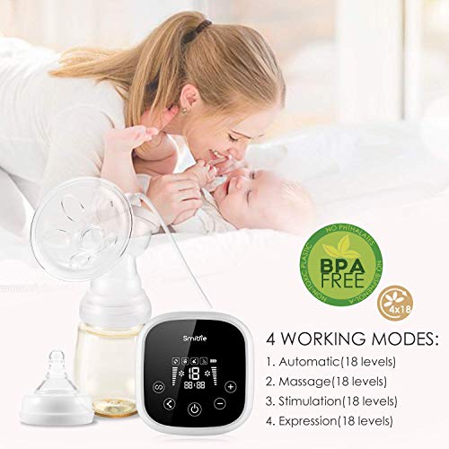 Intelligent Customizable Settings: Eccomum electric breast pumps have an LED Full Touchscreen controller with 4 modes (Massage, Automatic, Stimulation,Expression) and 18 suction levels for choice. The built-in intelligent memory chip will remember your last used settings automatically.