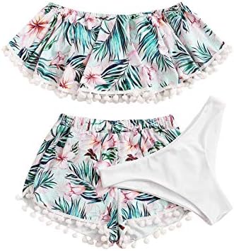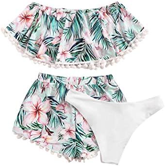 SOLY HUX Women's Off The Shoulder Floral Print Swimsuit Bikini Set with Shorts