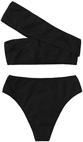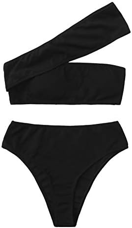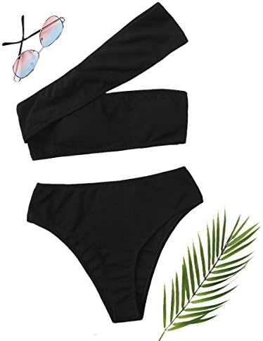 SweatyRocks Women's Bathing Suits One Shoulder Ribbed Bikini Set High Waisted Swimsuits