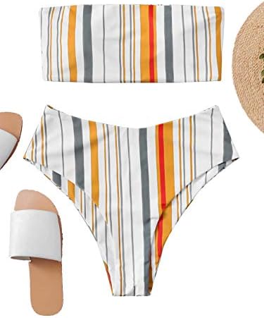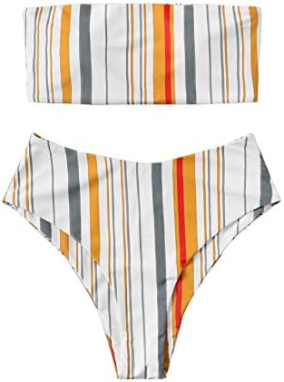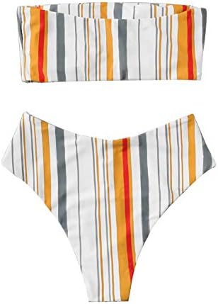 Features: Bandeau, stripe, pading bra, high waist, two piece swimsuits.