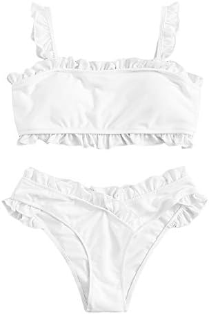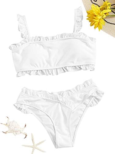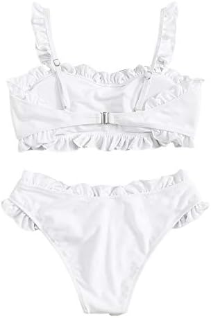Features: Frill trim, spaghetti strap, wireless, ruffle wrap bikini bottoms.