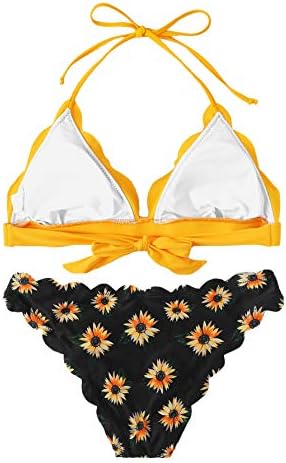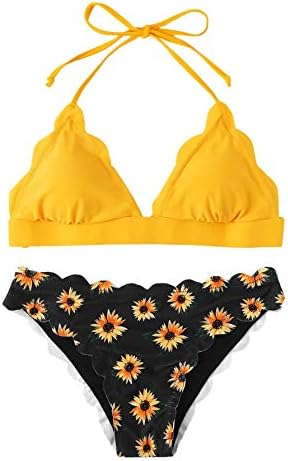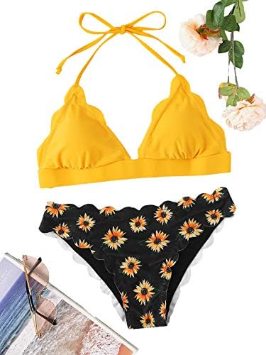 SweatyRocks Women's Sexy Bathing Suits Scallop Halter Bikini Top Floral Print Two Piece Swimsuits