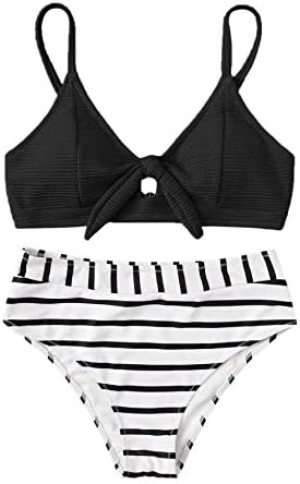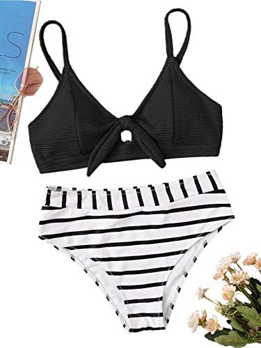 Features: Striped Print, High Waisted, Tie Knot Bathing Suits for Women.