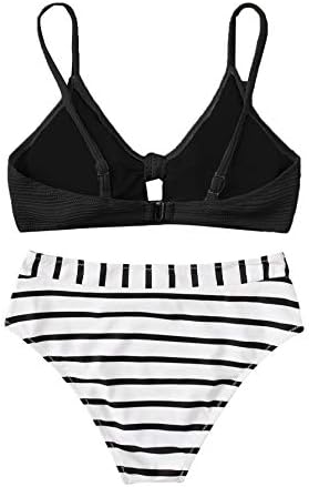SweatyRocks Women's Sexy Bikini Set Tie Kont Striped Print High Waisted Swimwear Swimsuit