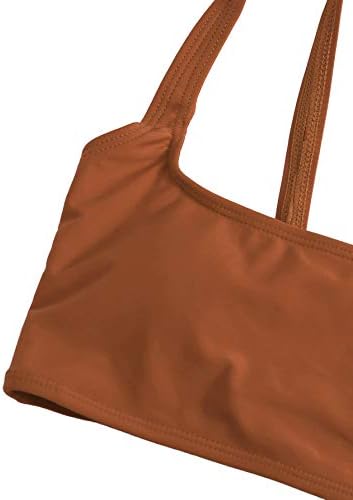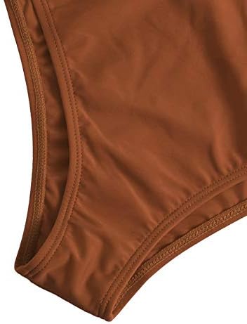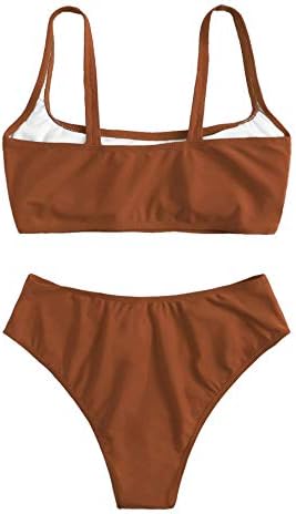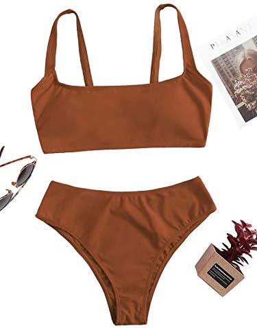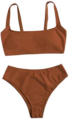 SweatyRocks Women's Swimwear Set Solid Scoop Neck High Waisted Bikini Swimsuits